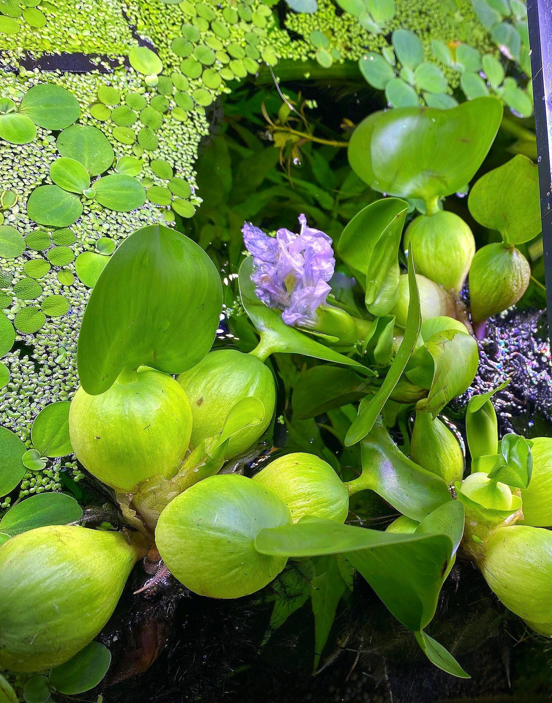 Transform your Aquarium (or pond) with Water Hyacinths. This is the perfect floating plant that add a splash of vibrant green and stunning purple blooms. These charming little plants not only enhance your aquatic space but also help improve water quality by absorbing excess nutrients. Easy to care for and fast-growing, they create a natural habitat for fish and wildlife while providing shade and shelter. Bring a touch of nature‘s beauty to your water features and watch your aquatic ecosystem thrive!